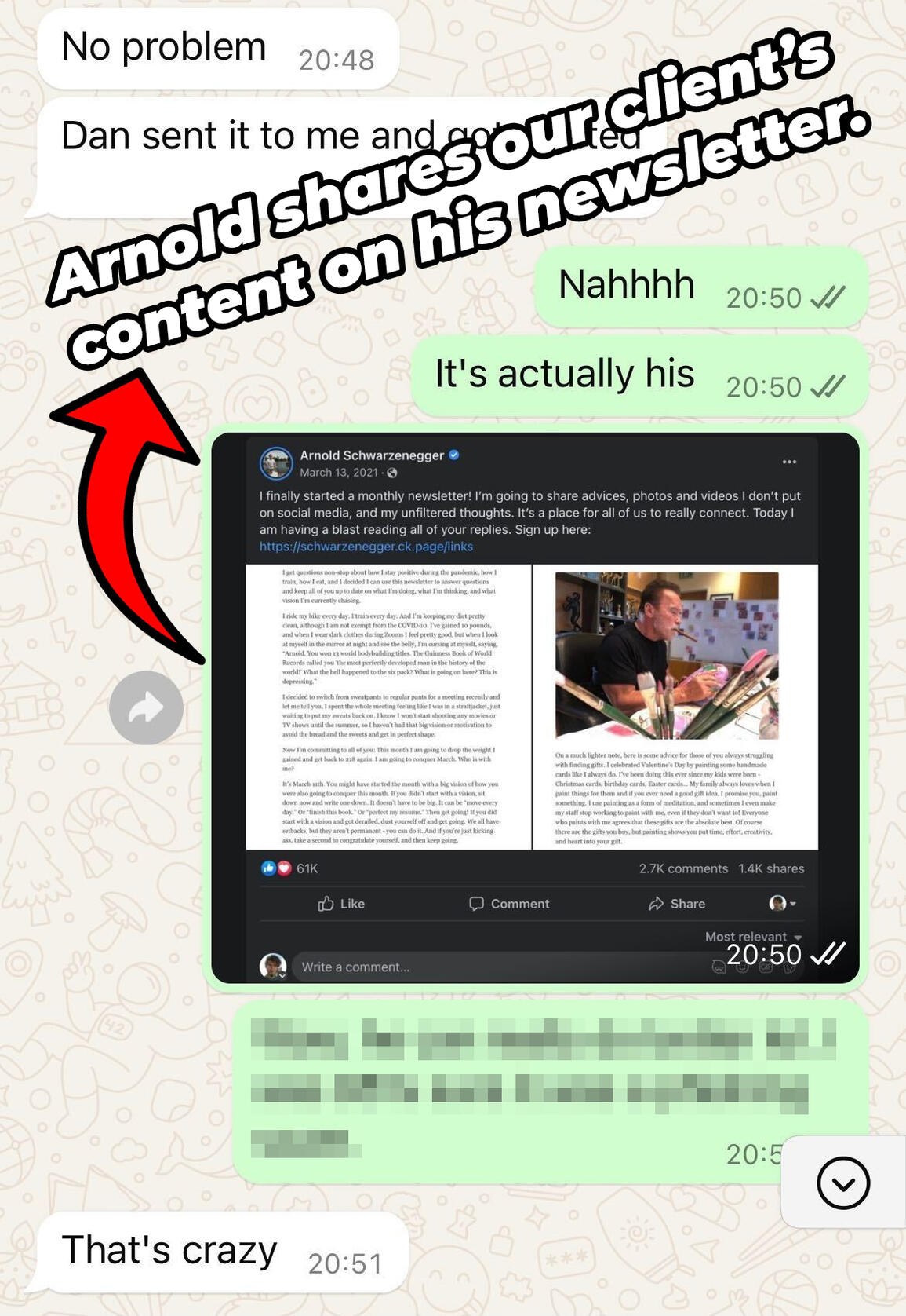 My client was surprised Arnold shared our content 😂